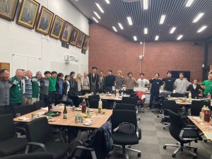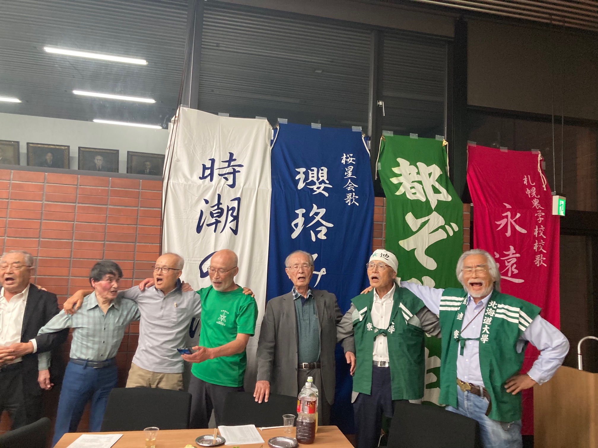 そして、最後は(一社)恵迪寮同窓会の藤田正一副理事長の発声で、明治45年「都ぞ弥生」1~5番を皆で肩を組んで声高らかに歌って締めました。なお、来賓の髙橋理事・副学長が学生と肩を組んで歌っておられた姿はとても印象的でした。最後までありがとうございました。北海道恵迪寮同窓会の千川浩治副会長の閉会挨拶が終わったのは、午後6時15分でした。