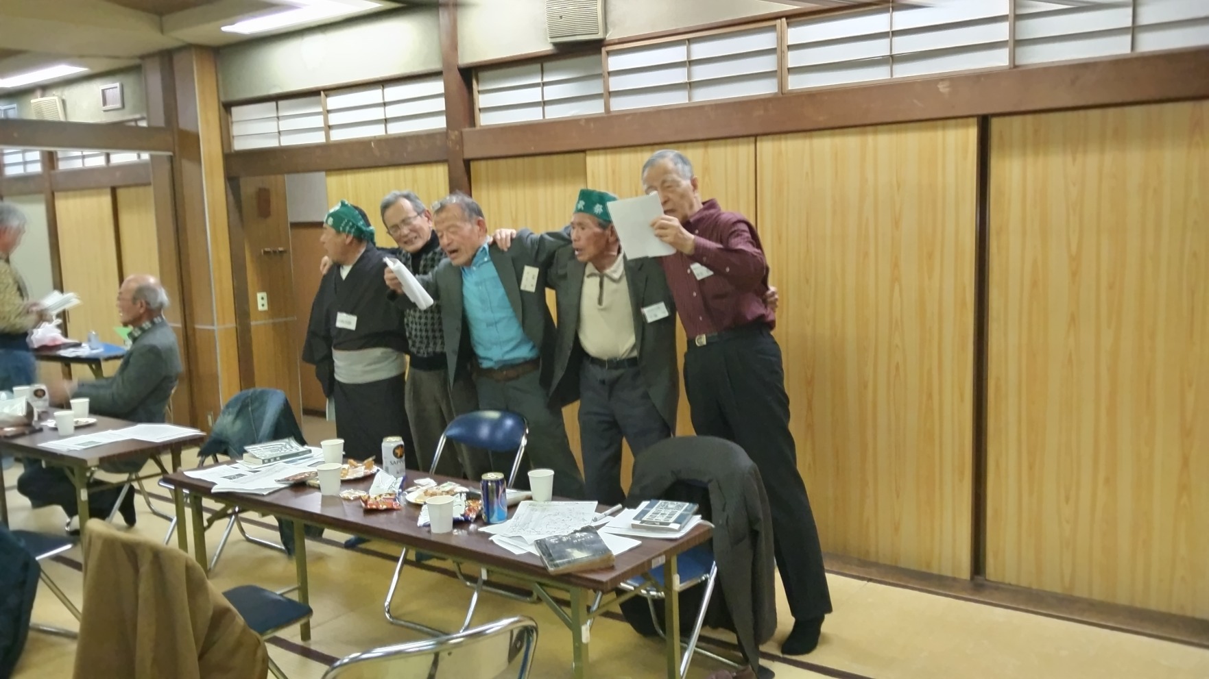 会場は、「鳳明館」森川別館の松竹梅の間(55畳間)を借りました。今回,同窓会の宣伝の効果もあってか、歌い初めでは過去最高の27名の参加でした。